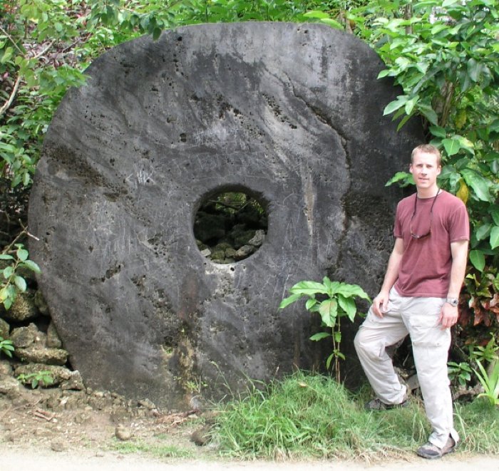 Archaeologist Scott Fitzpatrick beside a rai stone. (Scott Fitzpatrick)
