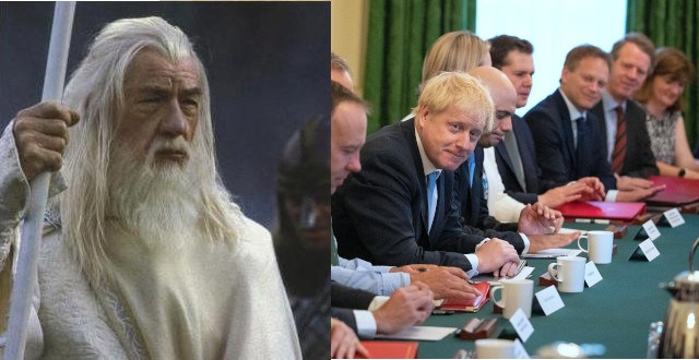 Left: Gandalf (supply Wikpedia). Proper: UK Prime Minister – https://twitter.com/10DowningStreet/standing/1154315968312745984, OGL Three, Hyperlink