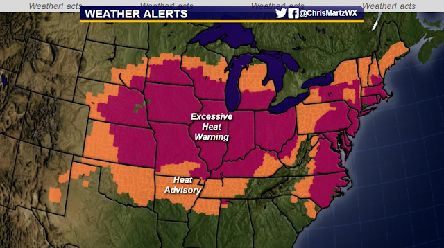 The Nationwide Climate Service has issued Warmth Advisories, Extreme Warmth Watches, and Extreme Warmth Warnings, from Nebraska to New Jersey as temperatures soar properly into the 90s (scattered 100s are doable too) by way of Sunday (Determine 2).