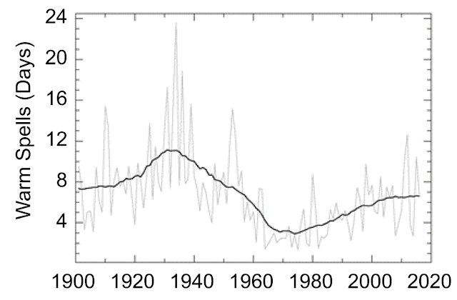 In line with the Fourth U.S. Nationwide Local weather Evaluation, the typical length of heat spells (warmth waves) has declined from round eleven days through the 1930s to six.5 days through the 2000s (Determine 5).³ In different phrases, the typical length of warmth waves have declined by almost 41% because the 1930s.