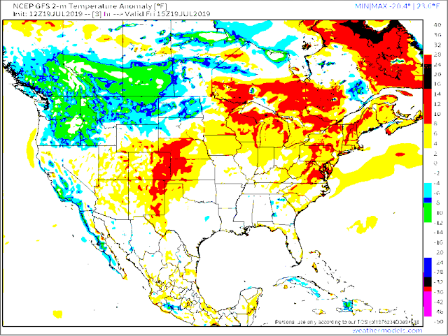 Determine three. GFS 2-meter temperature anomalies for the U.S. on Friday July 19, 2019. – weathermodels.com.