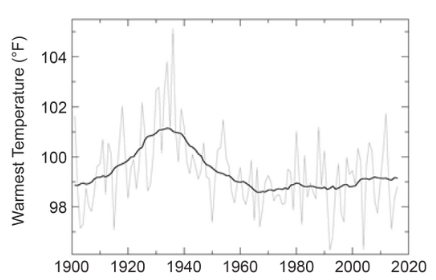 Determine 6. Common warmest temperature annually. – U.S. Fourth Nationwide Local weather Evaluation.