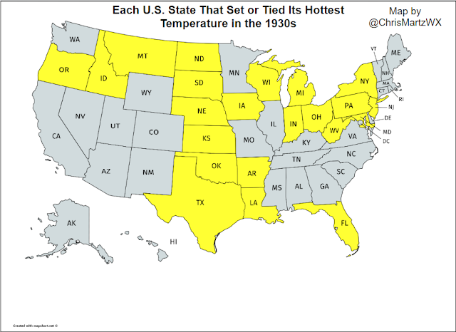 Determine eight. Every U.S. state that set or tied its hottest temperature within the 1930s.