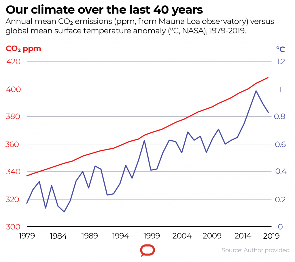 Within the 40 years since their assembly, the annual common CO2 focus within the ambiance, as measured at Mauna Loa in Hawaii, has elevated by about 21 p.c.