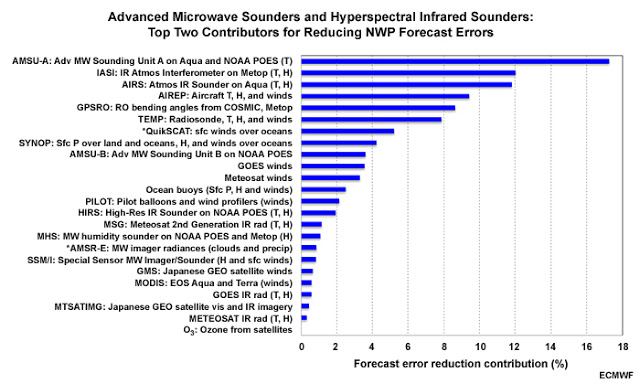 Satellites with microwave sounders like AMSU-A (see beneath). That platform ALONE contributed to a 17% discount in forecast error within the European Heart international mannequin (the world’s finest)