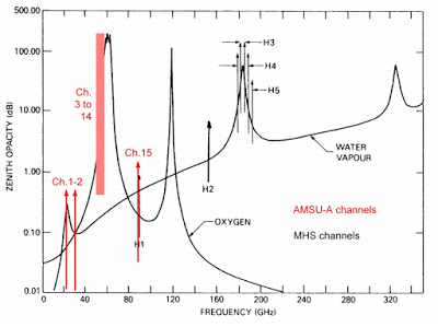 And a very powerful supply of climate info is from a set of satellites that comprise microwave sounders. These satellites observe the earth by sensing microwave radiation being emitted by water vapor, liquid water, ice, and the floor.