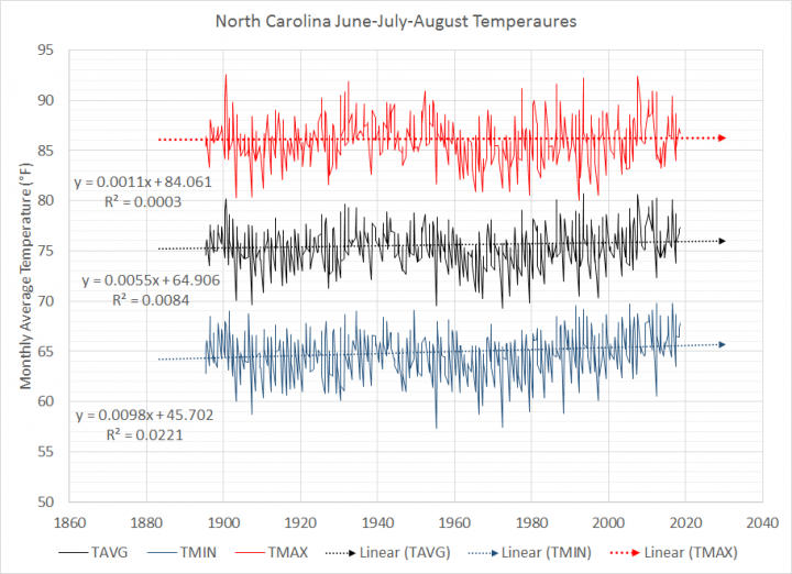 The utmost summer season temperatures have truly decreased a wee bit since 1895: Slope = -Zero.0009x; however there’s no precise development: R² = Zero.0003.