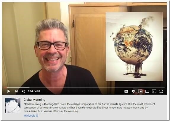 Right here’s a display screen shot of The Loftus Occasion video and the International Warming data slapped on the underside.